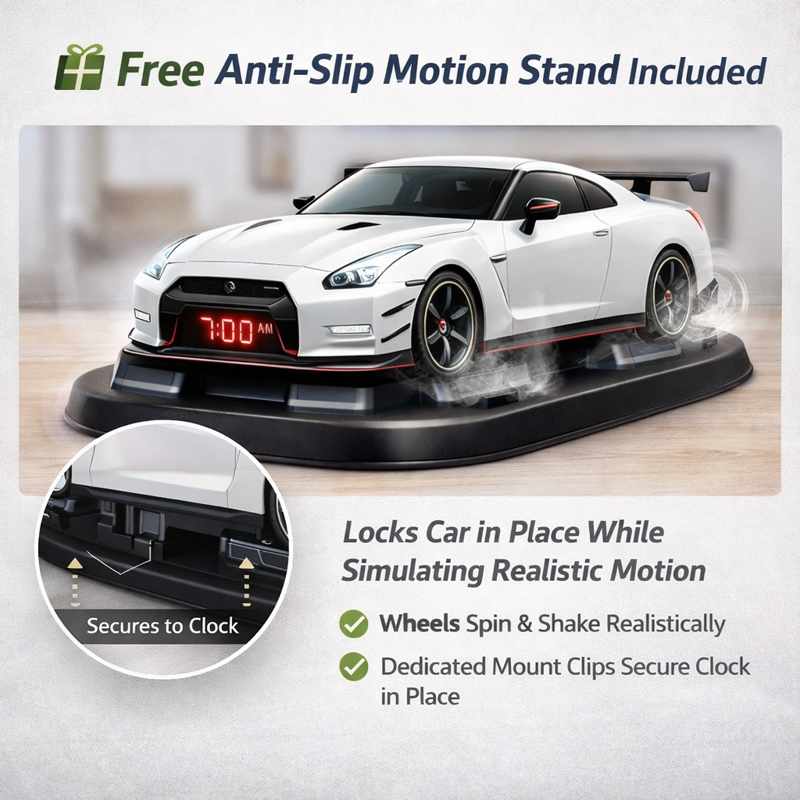 Every Hypercar Alarm Clock comes with a special motion stand included for free.