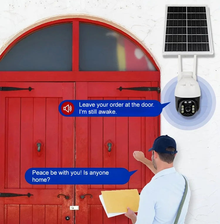 Two-way Solar Powered Night Vision Camera: The solar security camera built-in microphone and speaker, which provides two-way conversation all the time.